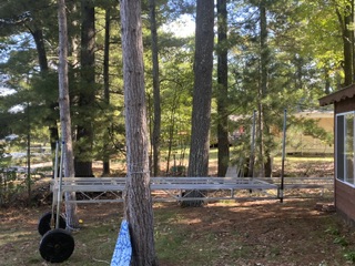 Strax efter nio på morgonen började Maken jobba med att ta allting upp ur vattnet inför den kommande vintern. Den stora presenningen kom först av båtställningen. Därefter körde han båten över den lilla sjön till hamnen och Svärsonen mötte honom med släpet/trailern att köra upp den på. Sedan kördes båten tillbaka hit till stugan där den nu står innan den skall köras iväg till vinterförvaringen. Sedan kördes vattenskotern över sjön och samma procedur upprepades- Däremot körde Maken vidare till en butik som servar och säljer dessa och där skall vattenskotern göras klar för vintern. Sedan skall den åter hämtas om ngn vecka och så förvaras denna hemma här vid stugan på tomten.