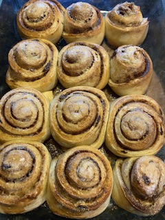 Sist men inte minst blev det kanelbullar idag. Pärlsocker är jag för tillfället utan så det fick bli vanligt strösocker ovanpå bullorna. Dessa bullar blev litet av ett experiment eftersom jag inte hade tillräckligt med jäst! Nåja, de blev rätt bra ändå, men jäst är nu uppskrivet på inköpslistan.