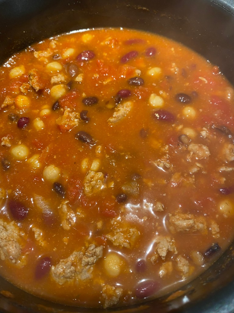 Som synes på bilden gjorde jag chili på malen kalkon, bönor, kryddor och tomater på måndagen. En utmärkt rätt när det är riktigt kalla dagar.
