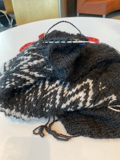 Självklart var stickningen medtagen. Den första ärmen är snart klar och förhoppningsvis får jag börja på den andra imorgon.