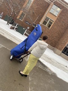 Snöfallet var väl mera irriterande än ngt annat eftersom vi skulle körande in till Minneapolis och dagens musikkonsert. Eftersom Lillasyster måste vara på plats innan själva konserten för repetition, åkte vi i två bilar. Dels pga detta men också för att harpan, som övernattat vid musikskolan skulle transporteras hem efter konserten. När baksätena ligger ner för att harpan skall rymmas, finns det endast utrymme för chauffören och en passagerare i bilen.
