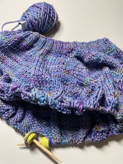 Jag har sex varv kvar innan raglan sömmarna är klara och det är dags att dela upp projektet i ok och ärmar. Med rätt grova stickor på 4,5 mm går projektet fort och det är väl bra eftersom det lovas töväder med början om ngn dag. Stickar jag snabbt hinner jag kanske ha den nya tröjan under de varmare dagarna eftersom den inte är väldigt tjock. Några plusgrader under dagarna är mycket välkommet efter de senaste kalla veckorna.