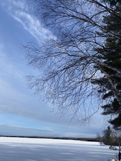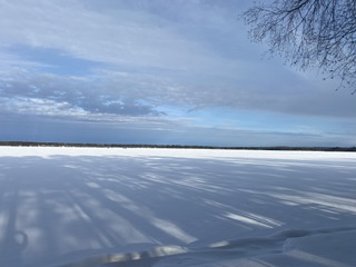 Medan Maken var på vift stannade jag vid stugan och njöt av detta. Det blev en del skottning och naturligtvis fotografering av den frusna sjön. Solen tittade fram vid 14 tiden och termometern visade på -7 grader. Vinden var däremot kall, så jag var rätt kall, trots påpälsad när jag kom in i stugvärmen igen efter skottningen.