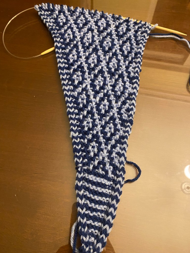 Strömsö grafiska sjal. Fjärde gången gillt om jag räknat rätt och äntligen har jag kommit längre än diagram 3! Skam den som ger sig liksom.