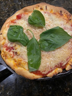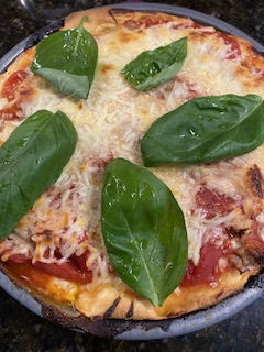 Basilikan lades på några minuter efter att pizzorna kommit ur ugnen.