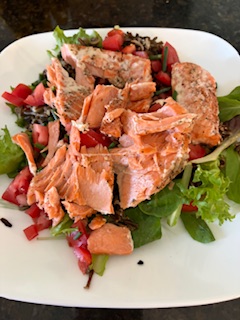 Jag bestämde mig för att tillreda årets första laxsallad eftersom det ändå var så varmt. Den blev så god och även om jag har svårt att få till en bra citrondressing till denna ( har ngn ngt bra recept i sina gömmor möjligen?) gick det bra med bara färskpressad citronsaft också.